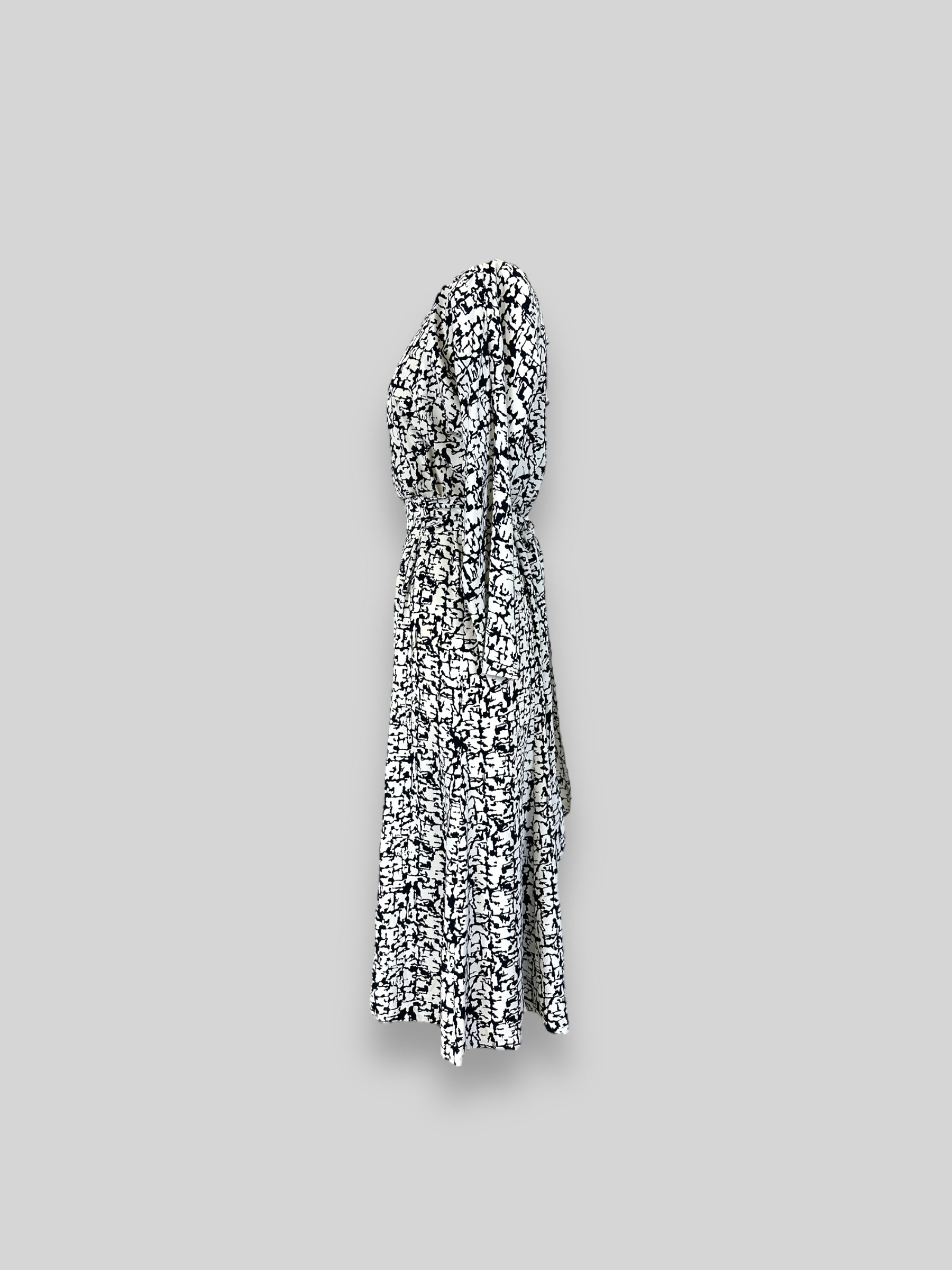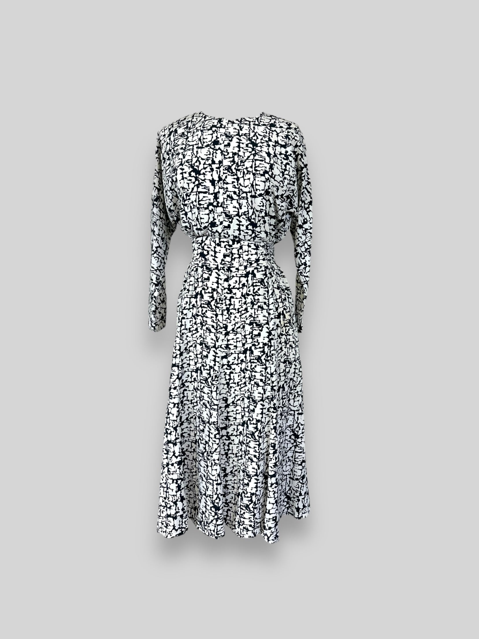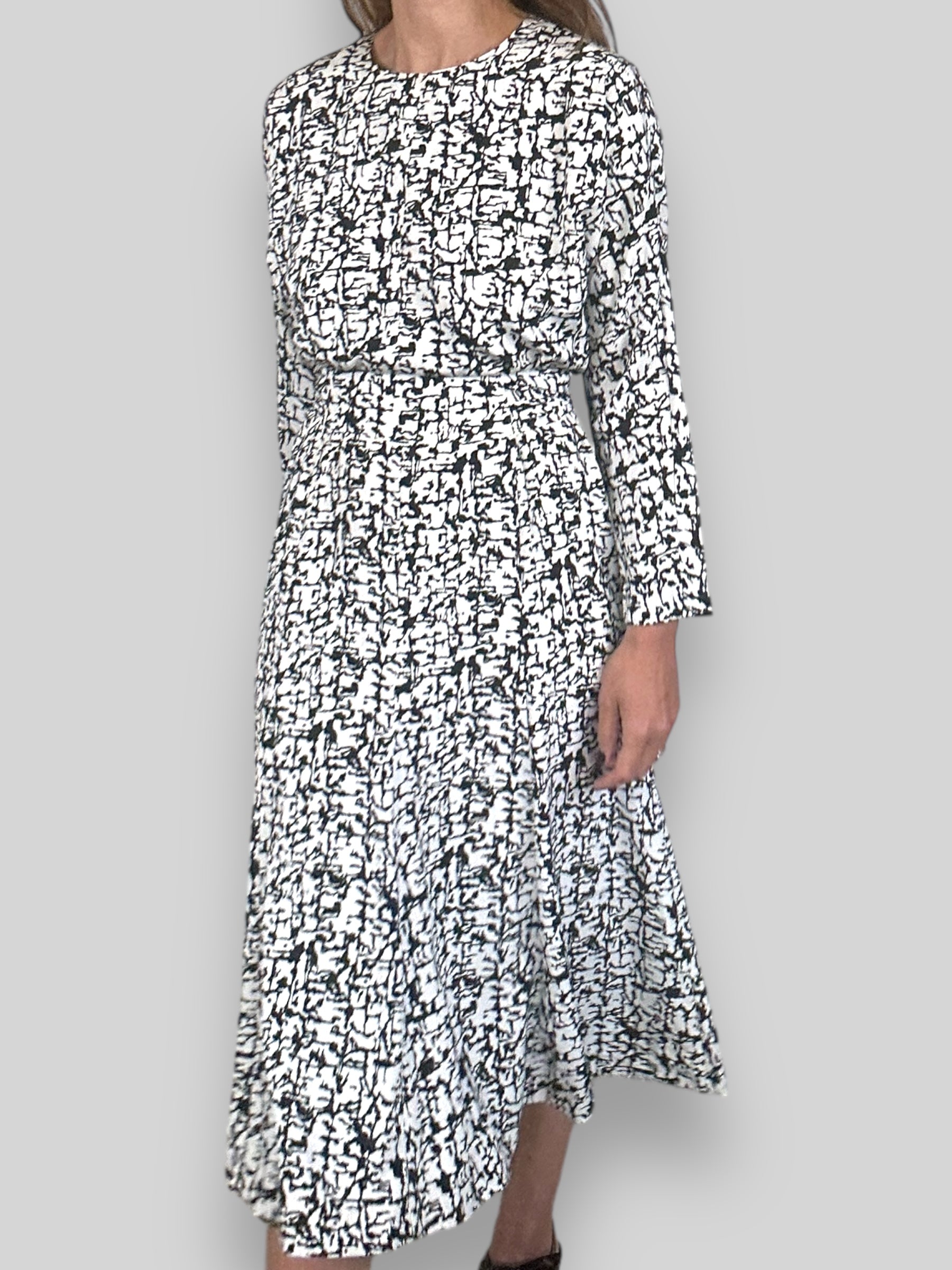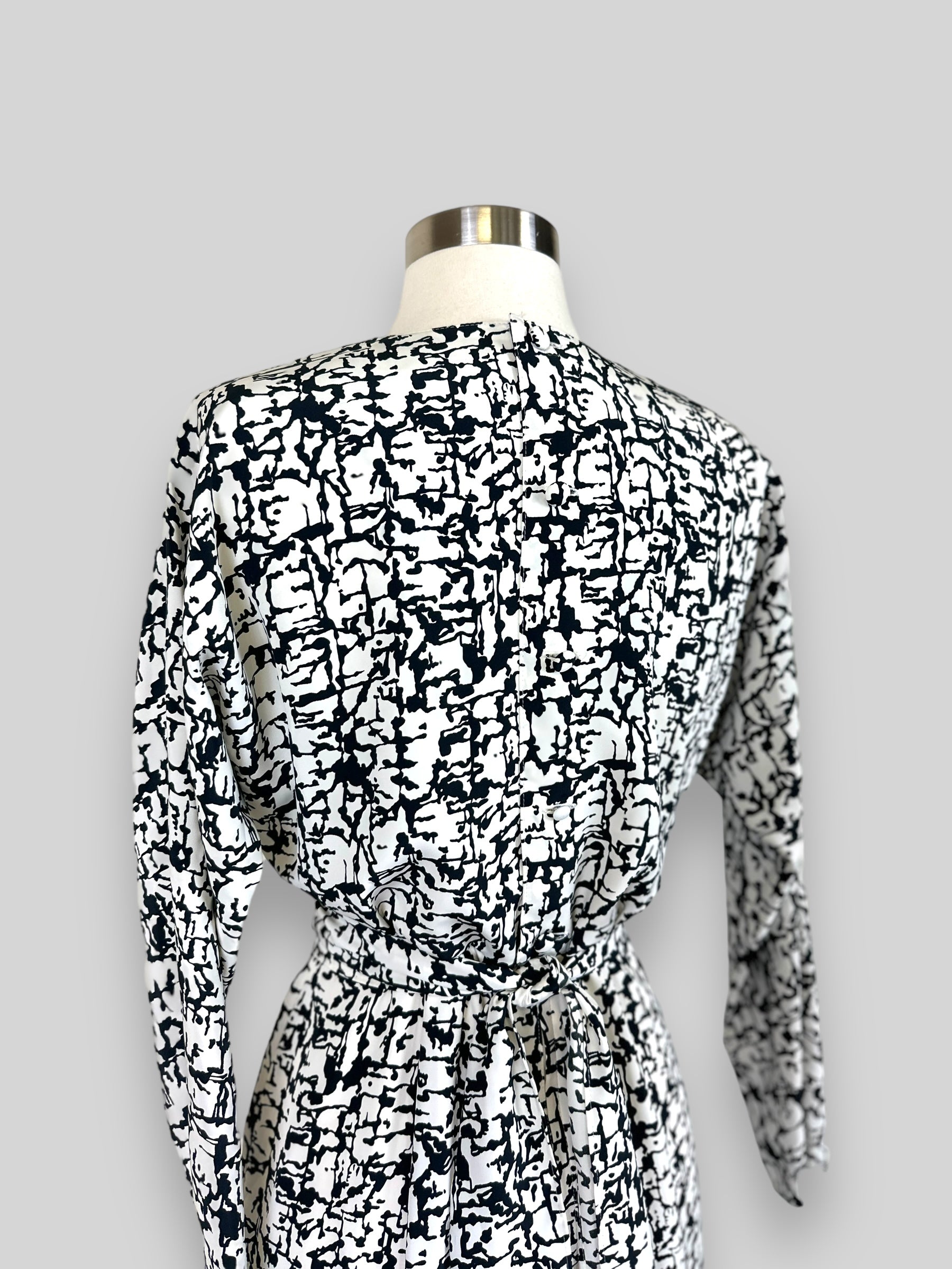 Feminine Vintage dress printed black and white. Fully lining with zipper and buttons in the back.