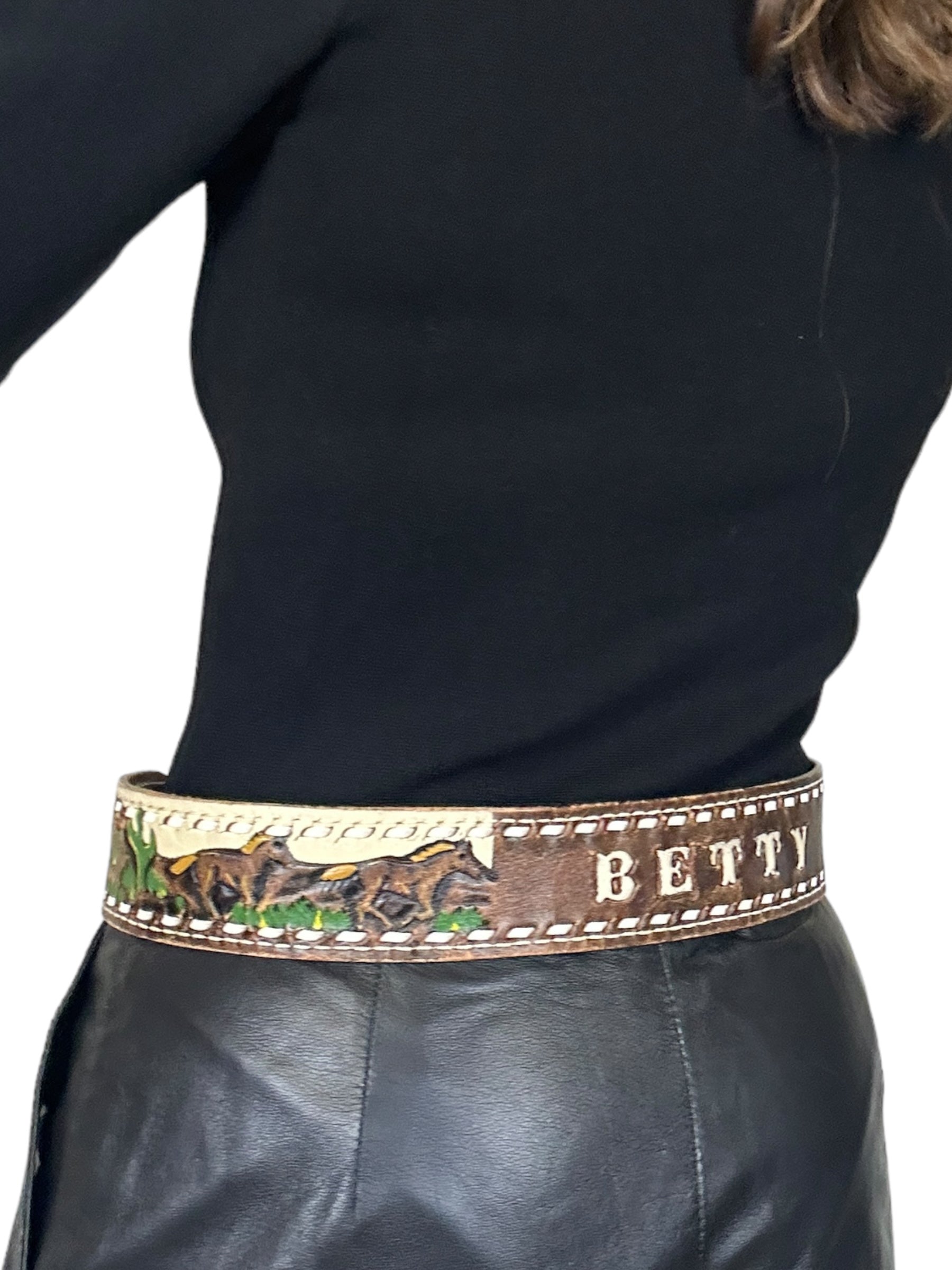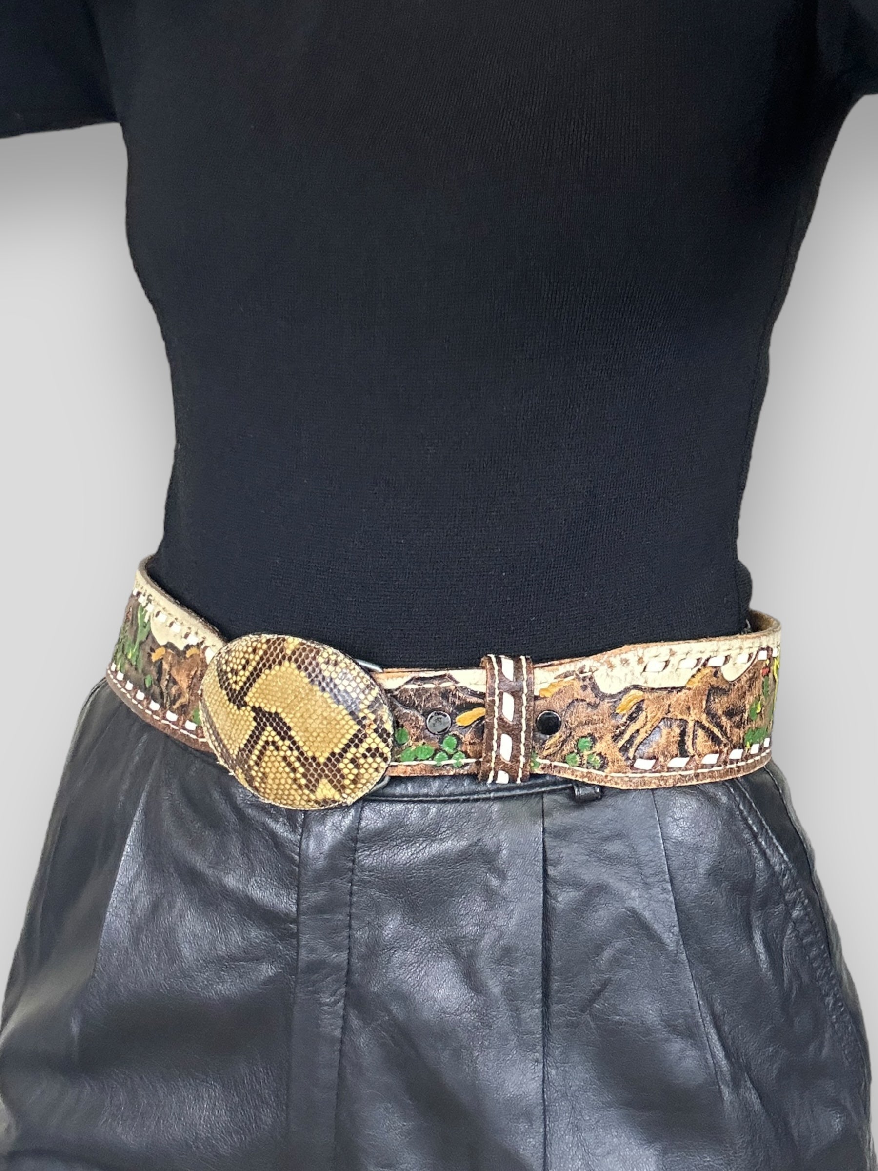 Real Native American Vintage Leather hand painted and hand sewing Western style belt.
