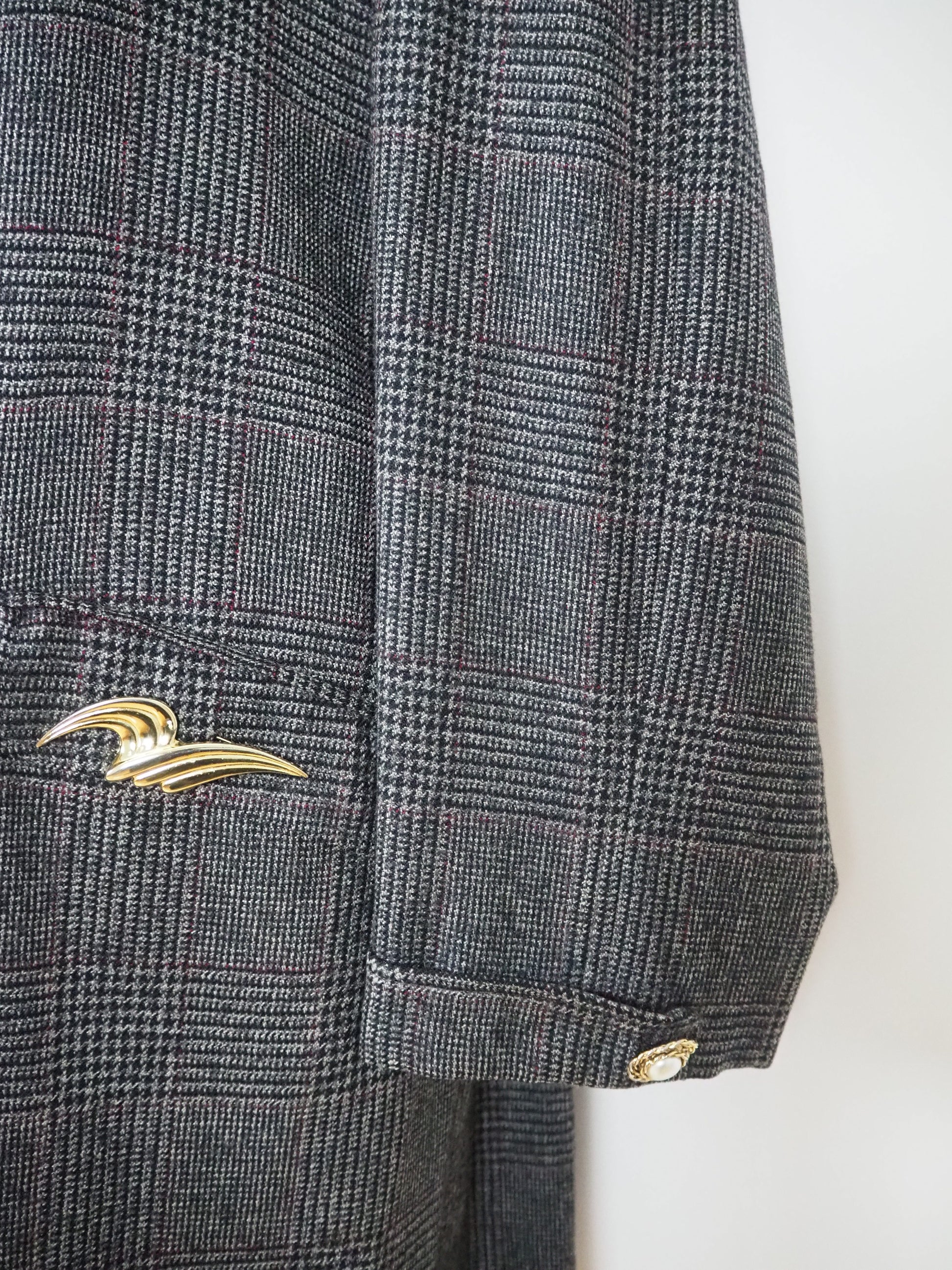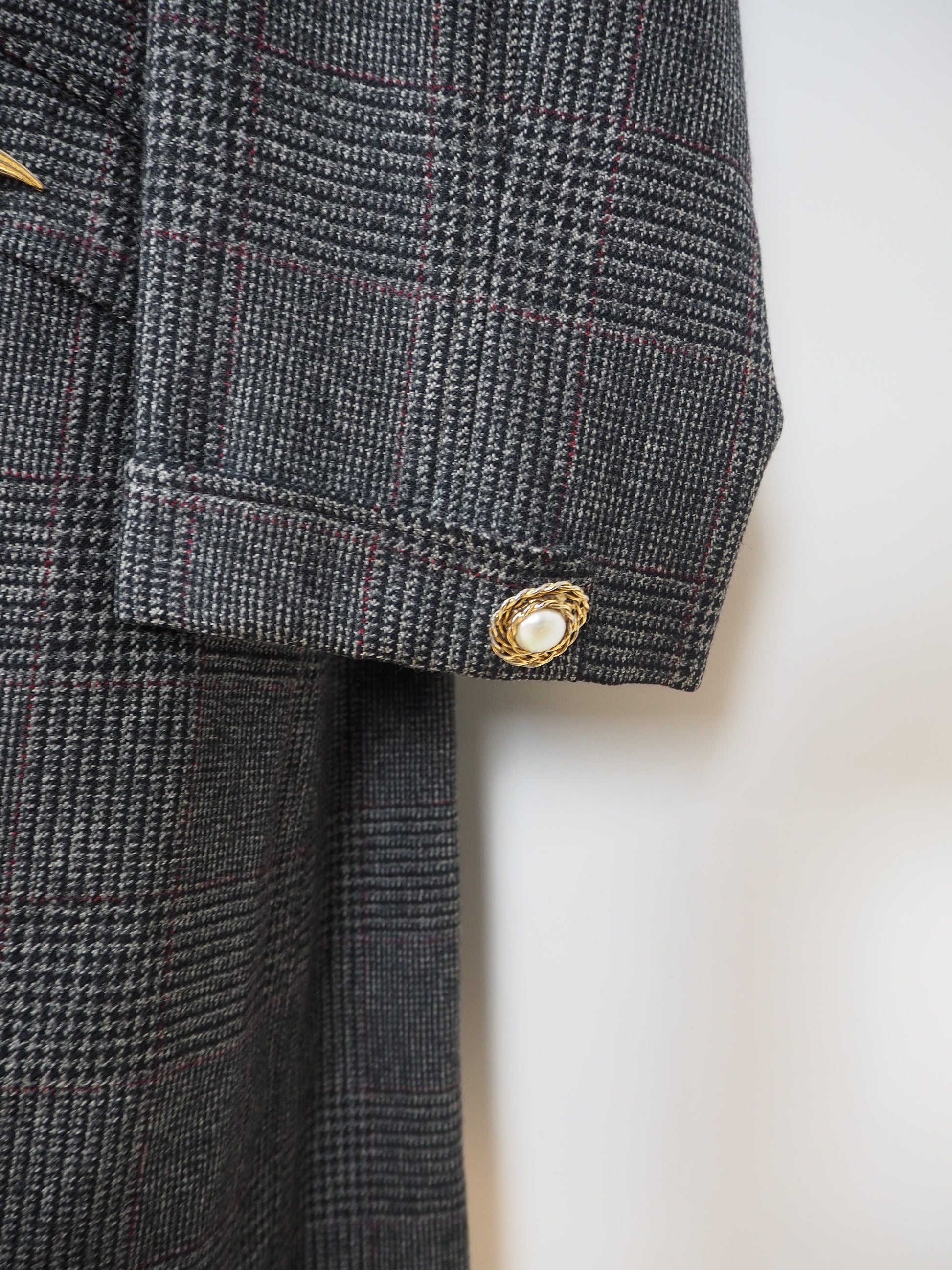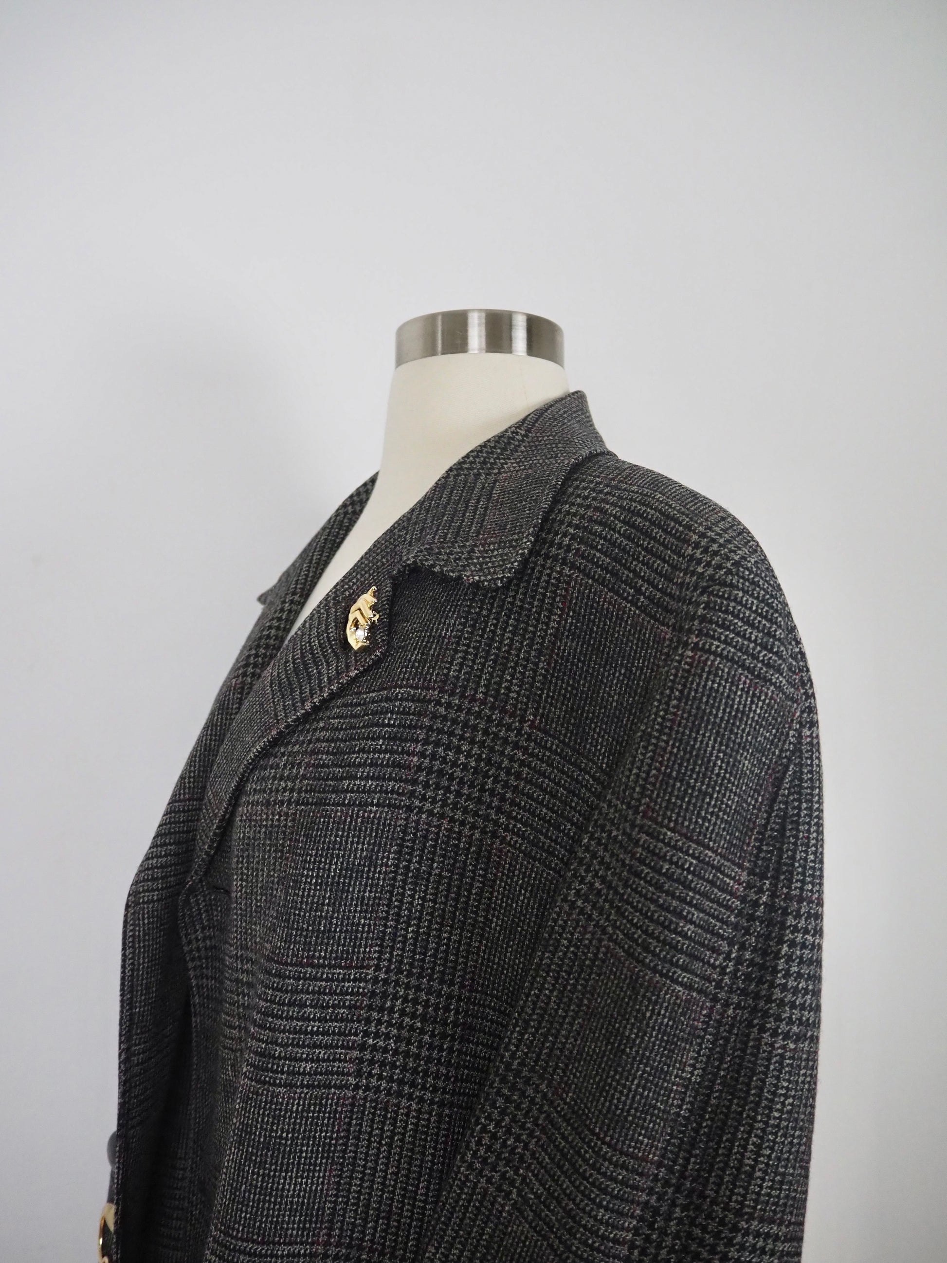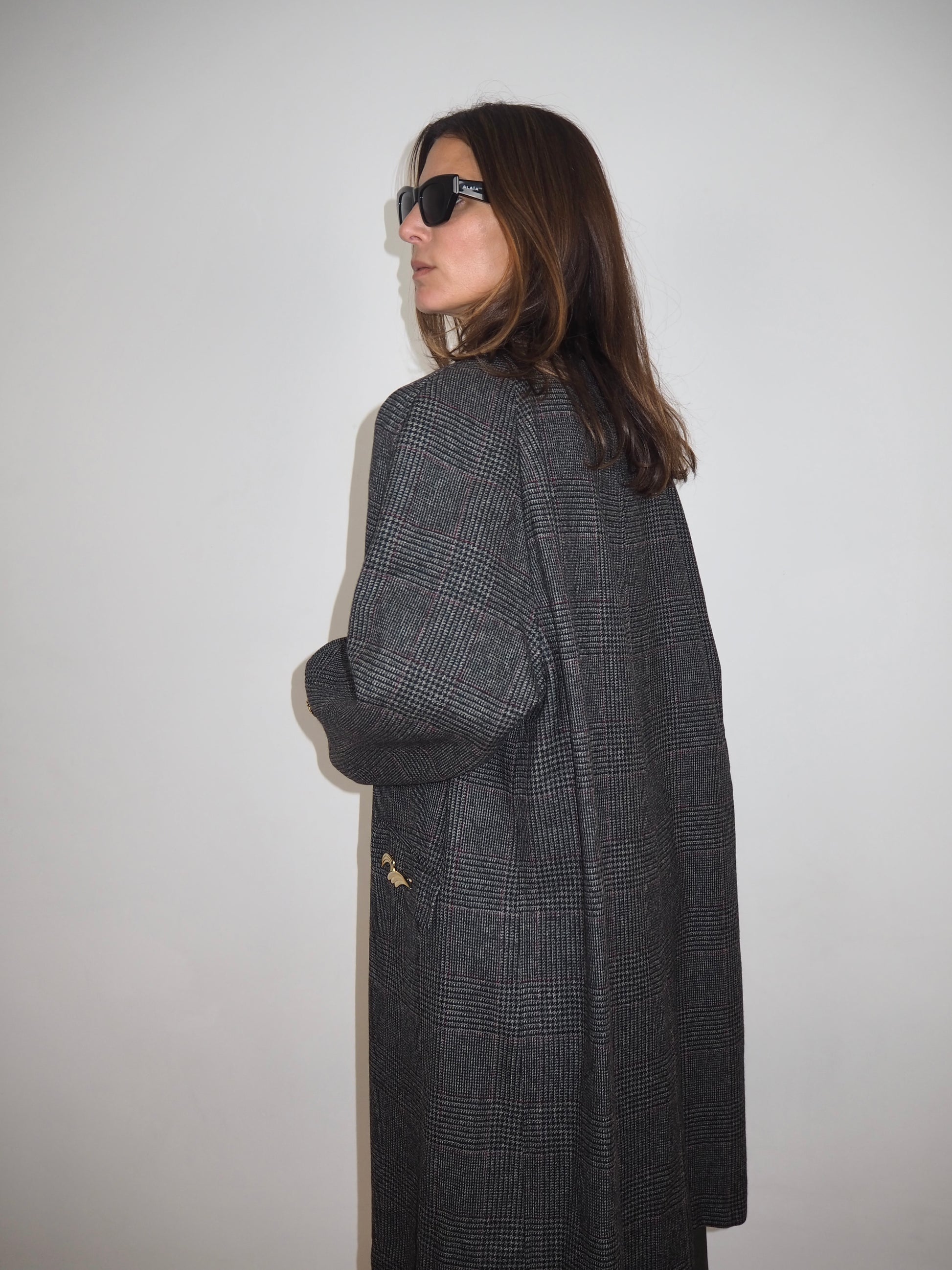 Vintage Wool 90s Anthracite Coat adorned by Jen Wonders with Vintage Gold brooches, Vintage Buttons and red stitching on top side as a sign of good fortune.