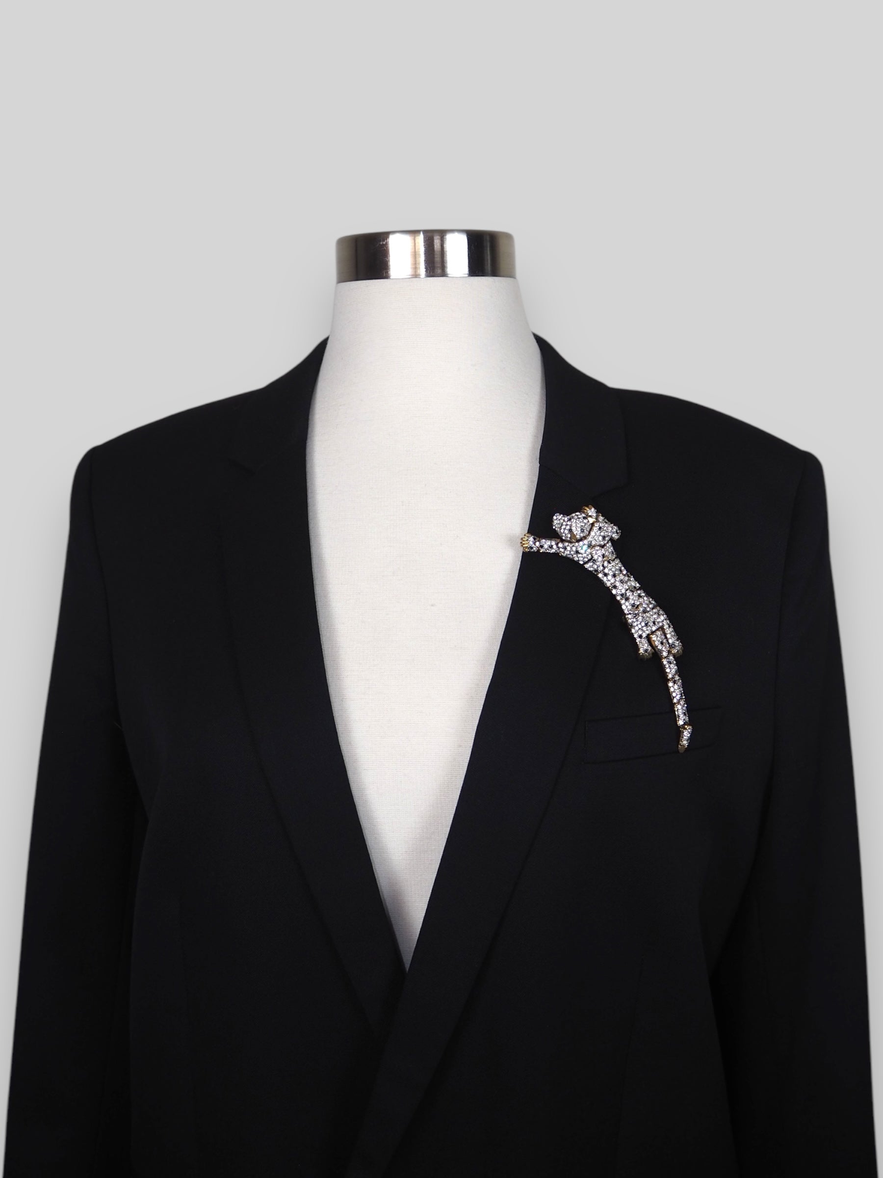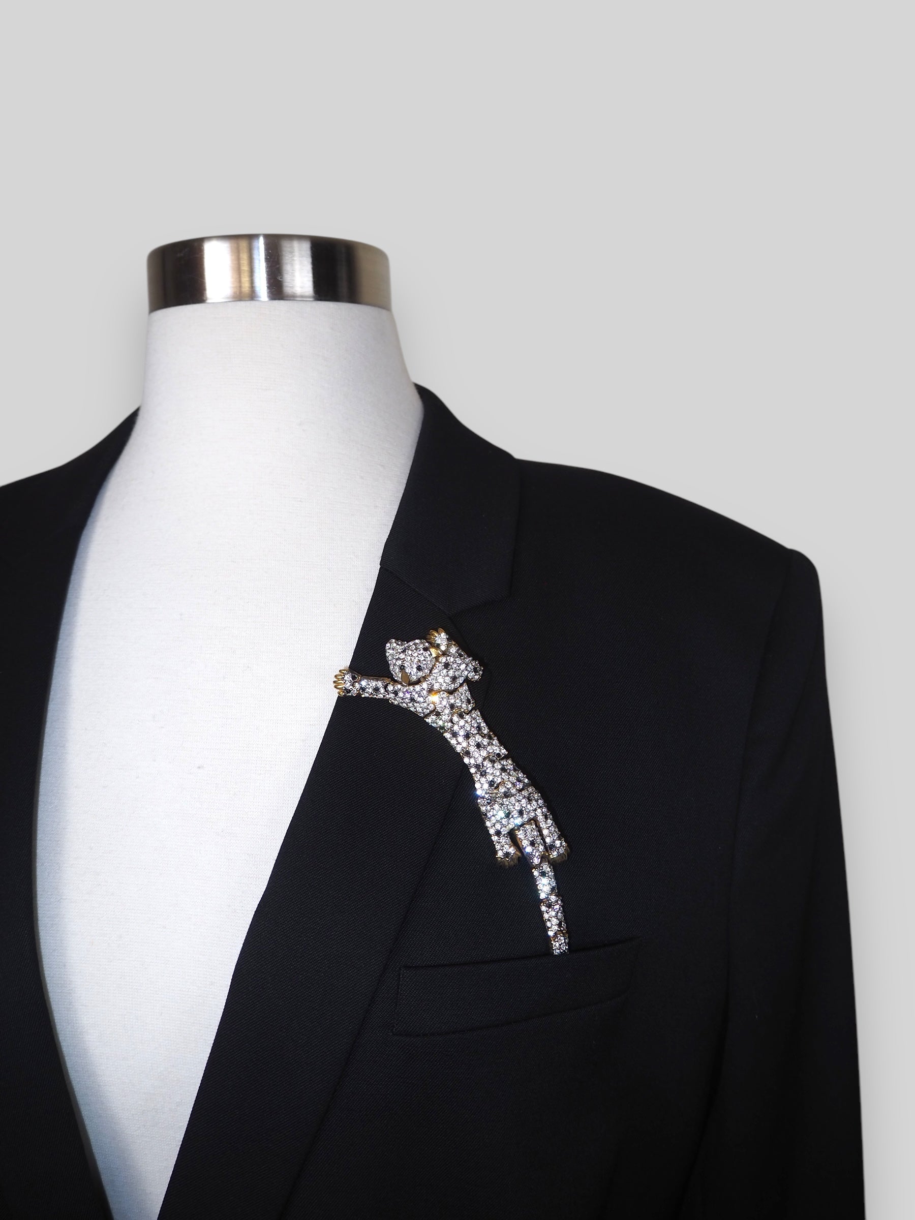 Each brooch is hand-selected and thoughtfully placed, giving this piece an unforgettable character and ensuring that no two blazers are alike.