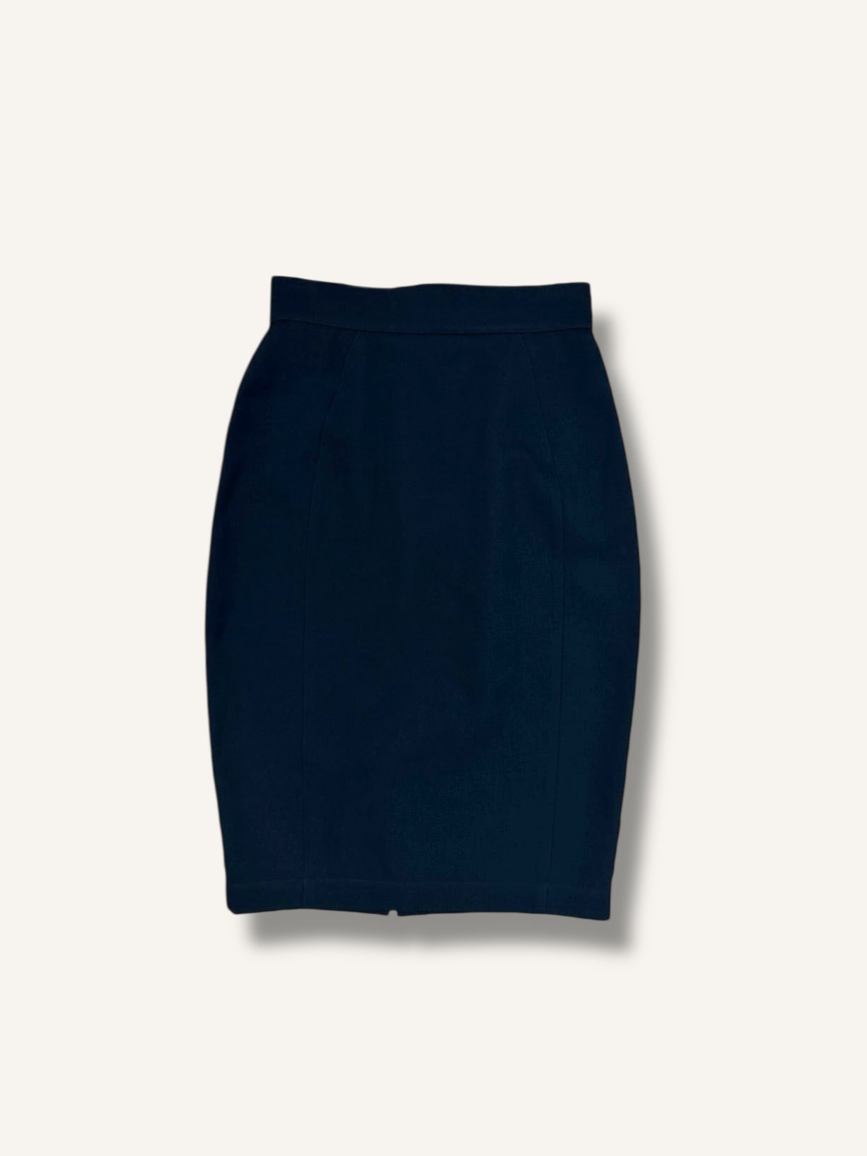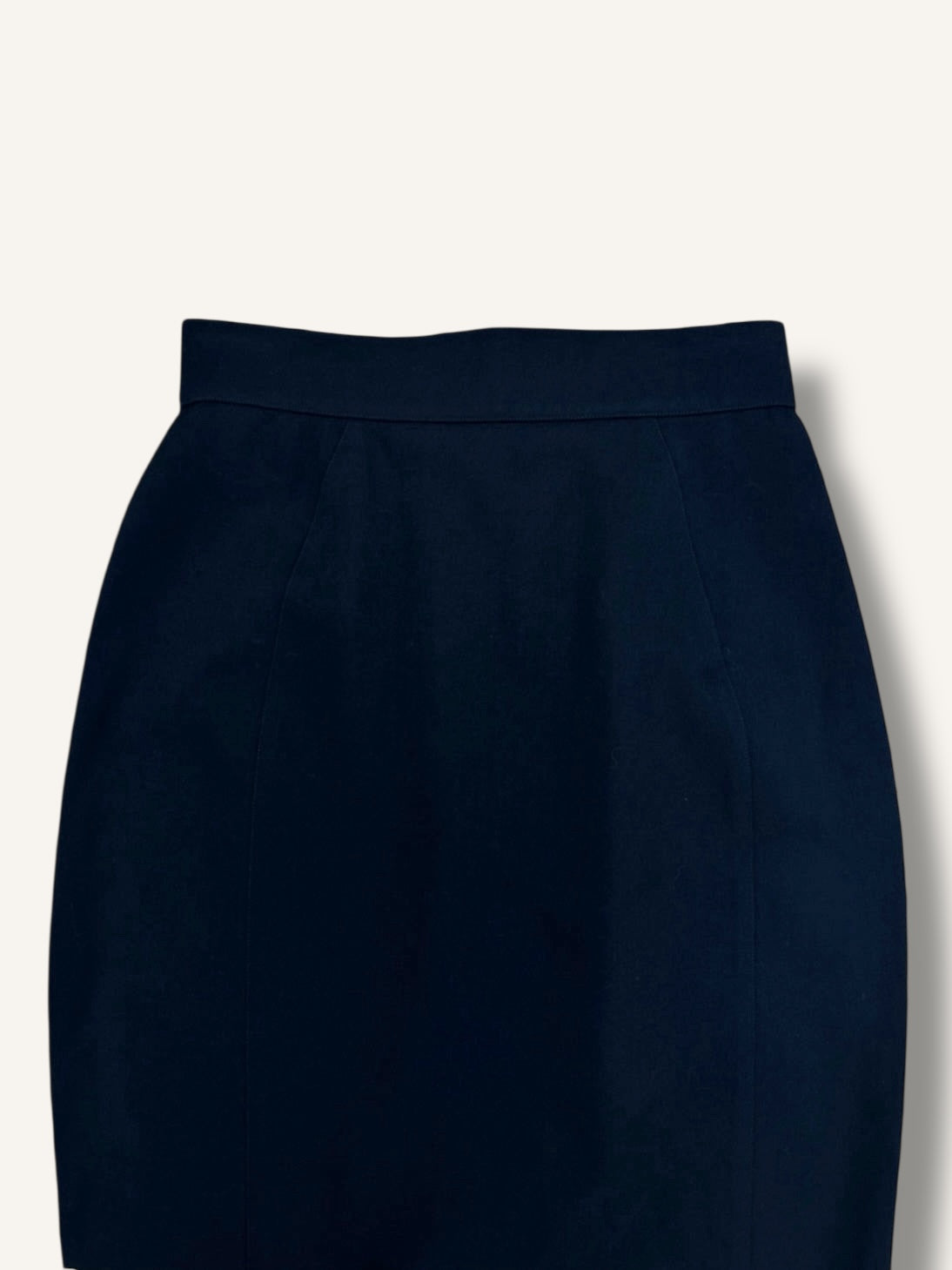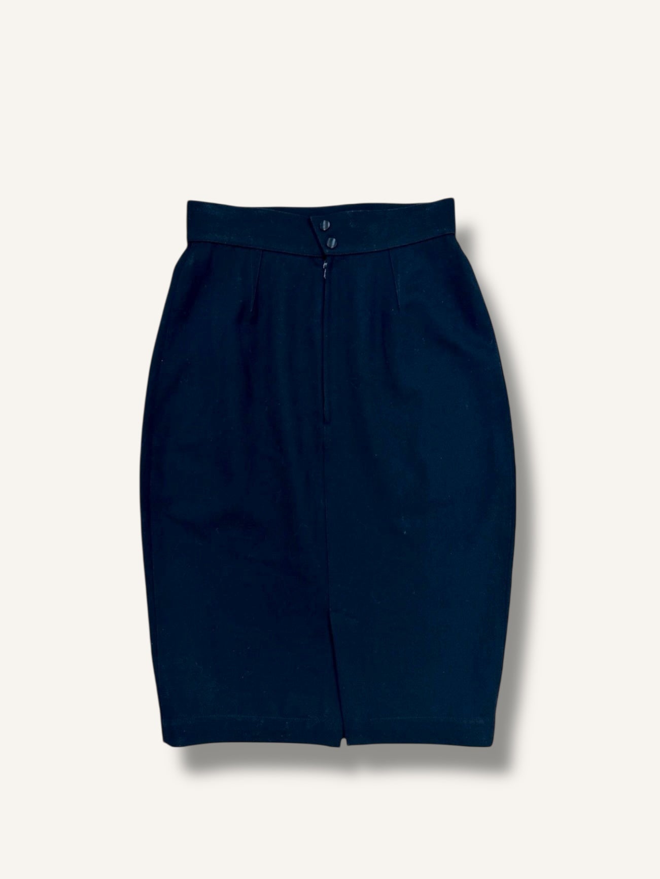 Vintage Thierry Mugler Black high waisted Pencil skirt with back zipper and original buttons closure. 100% Wool
