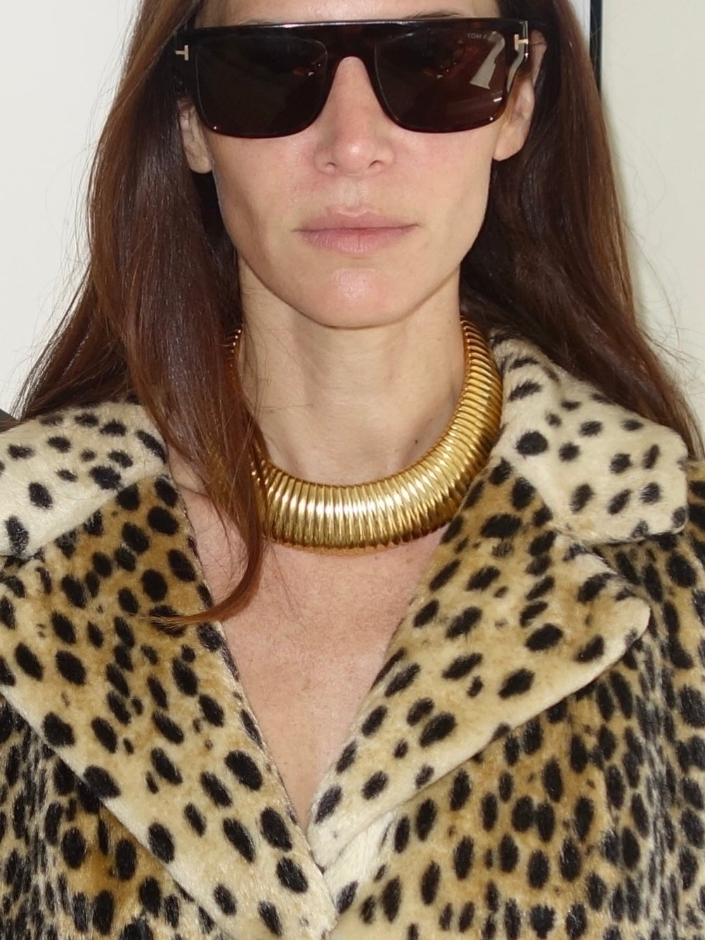 Vintage 1980s Tubogas-Style Collar Necklace, Gold-Tone. Bold and sculptural, this vintage 80s collar necklace captures the iconic tubogas style with its fluid, ribbed metal design that hugs the neckline beautifully. The piece has a solid, substantial feel and an effortless slip-on structure with a discreet hinged opening at the back. A striking statement on its own or layered with other gold chains, it instantly gives that chic, editorial, high-fashion edge.