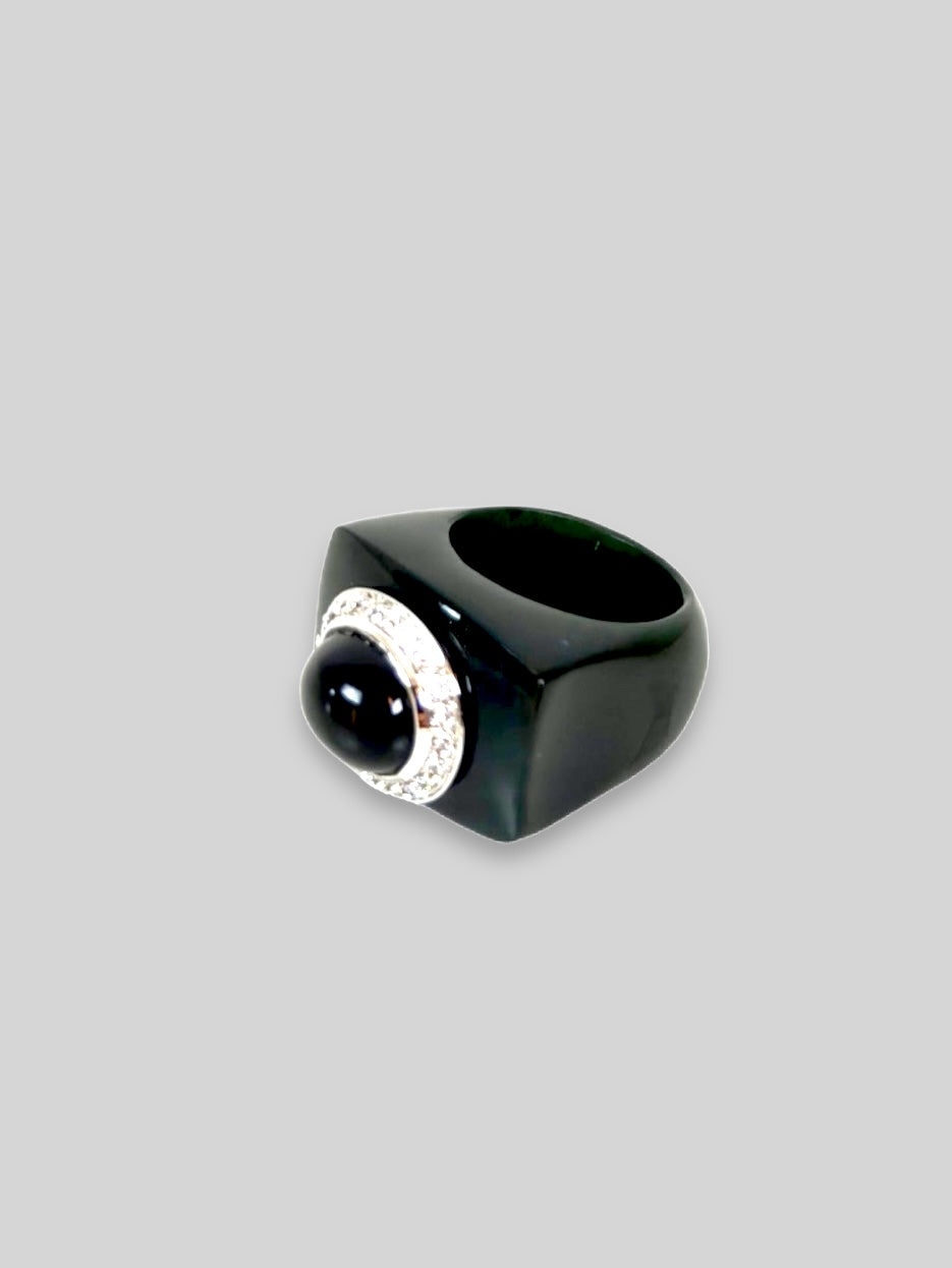 Vintage Onyx Ring with diamonds and 14k White gold.
