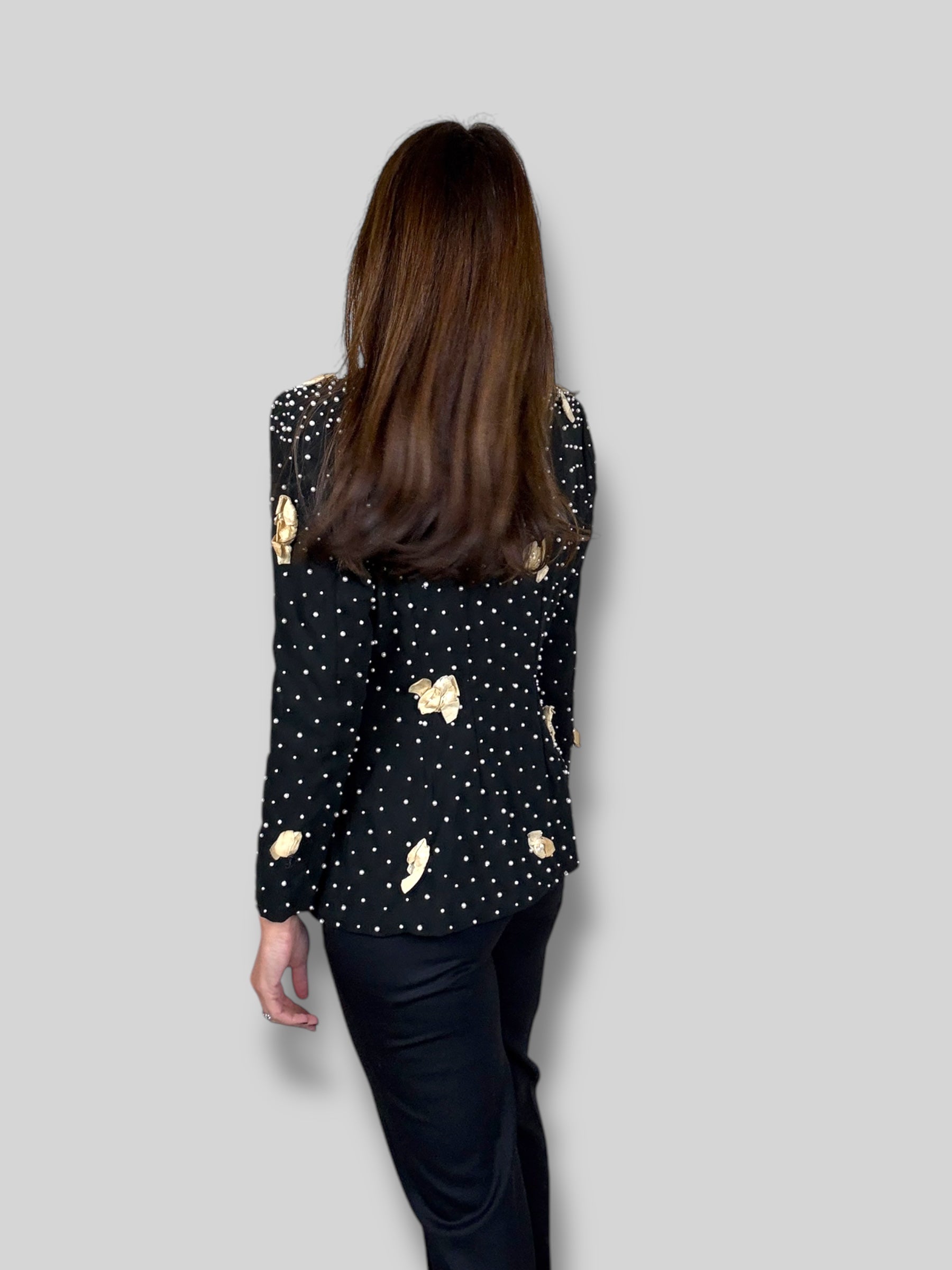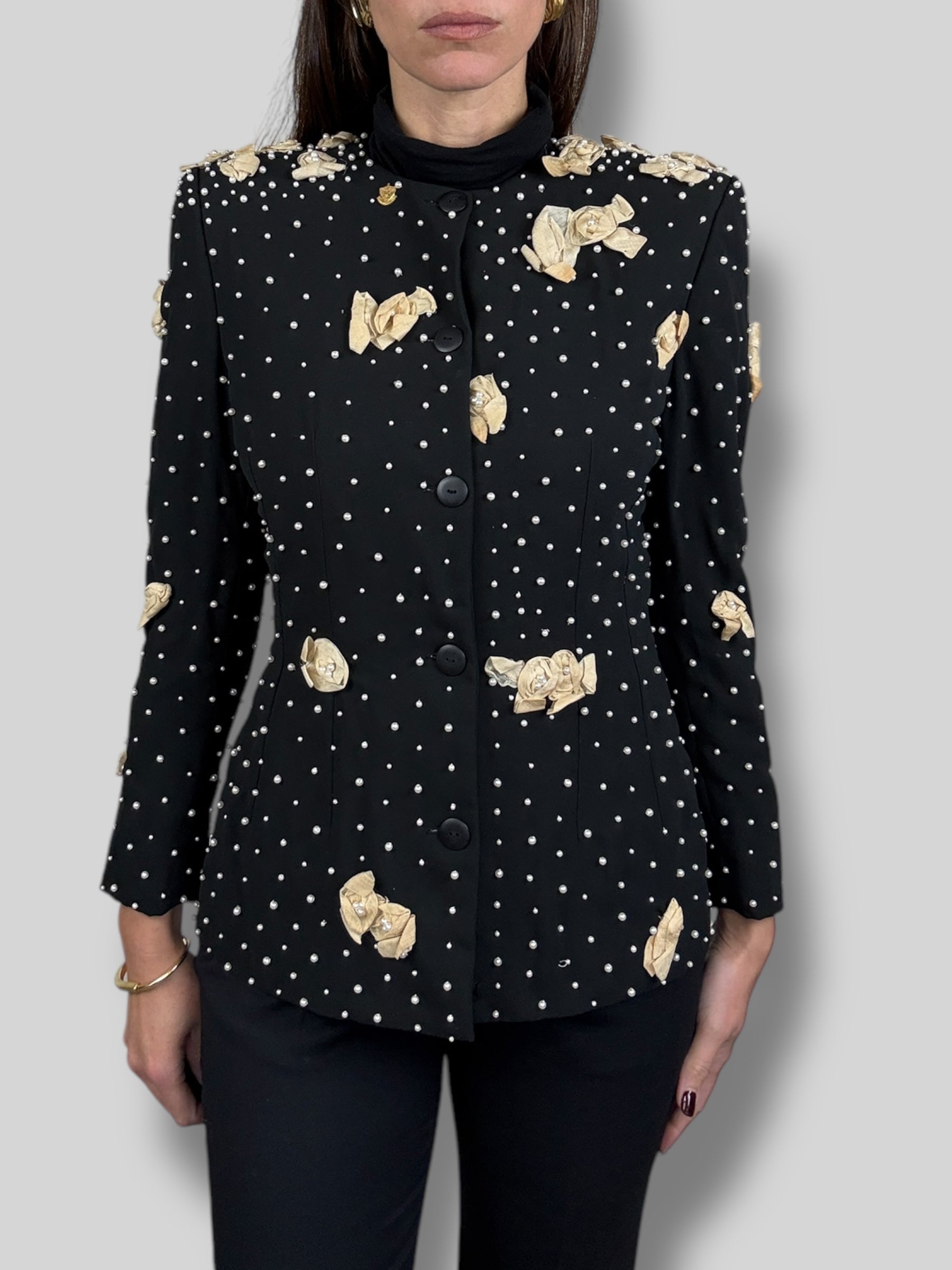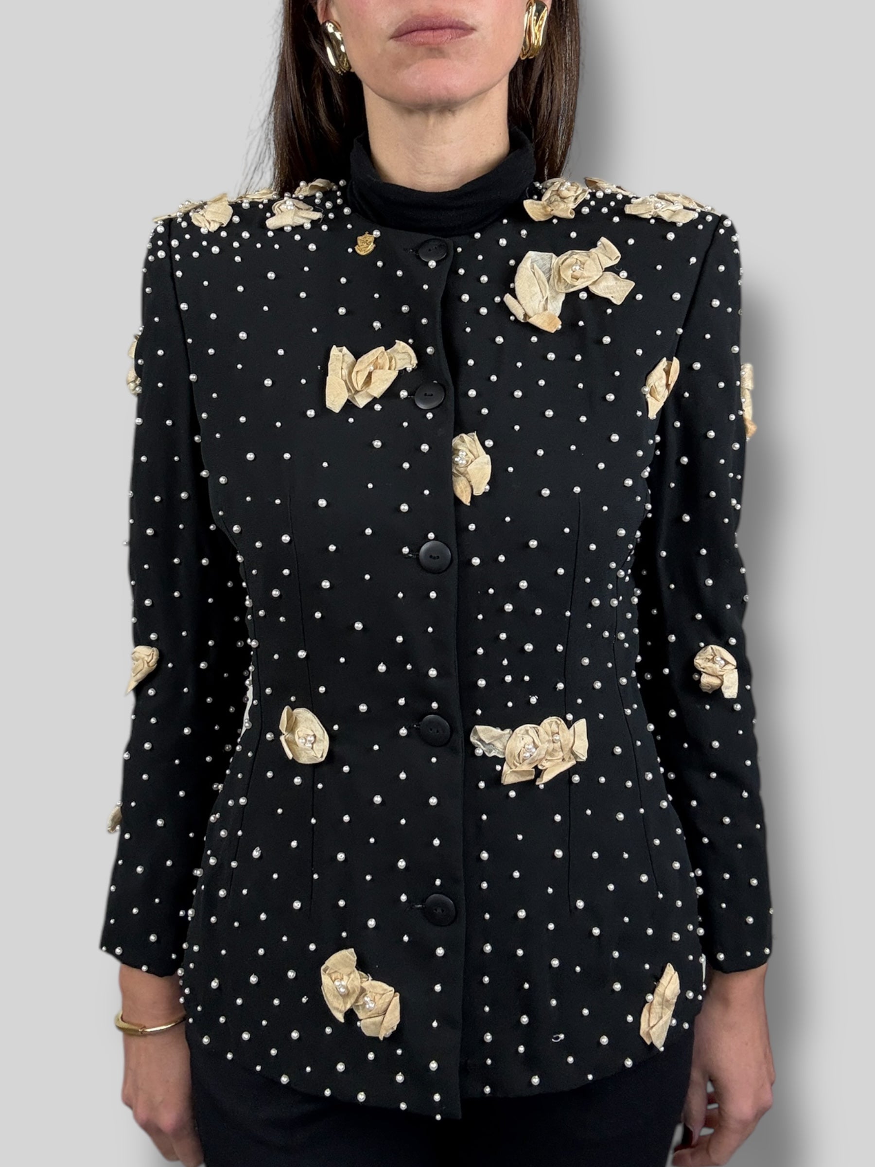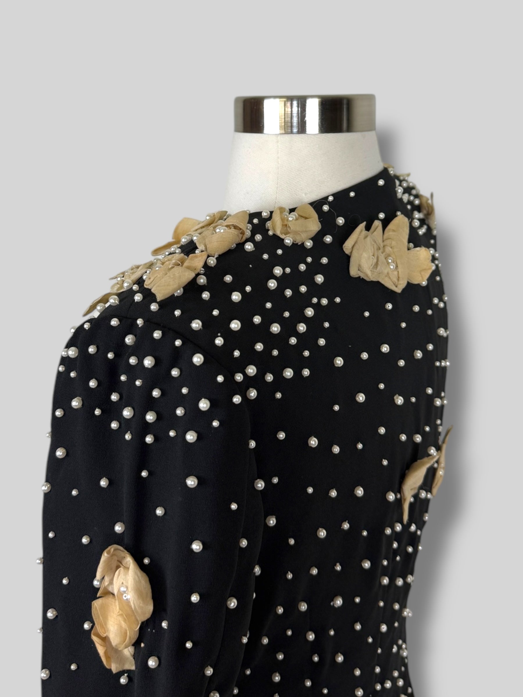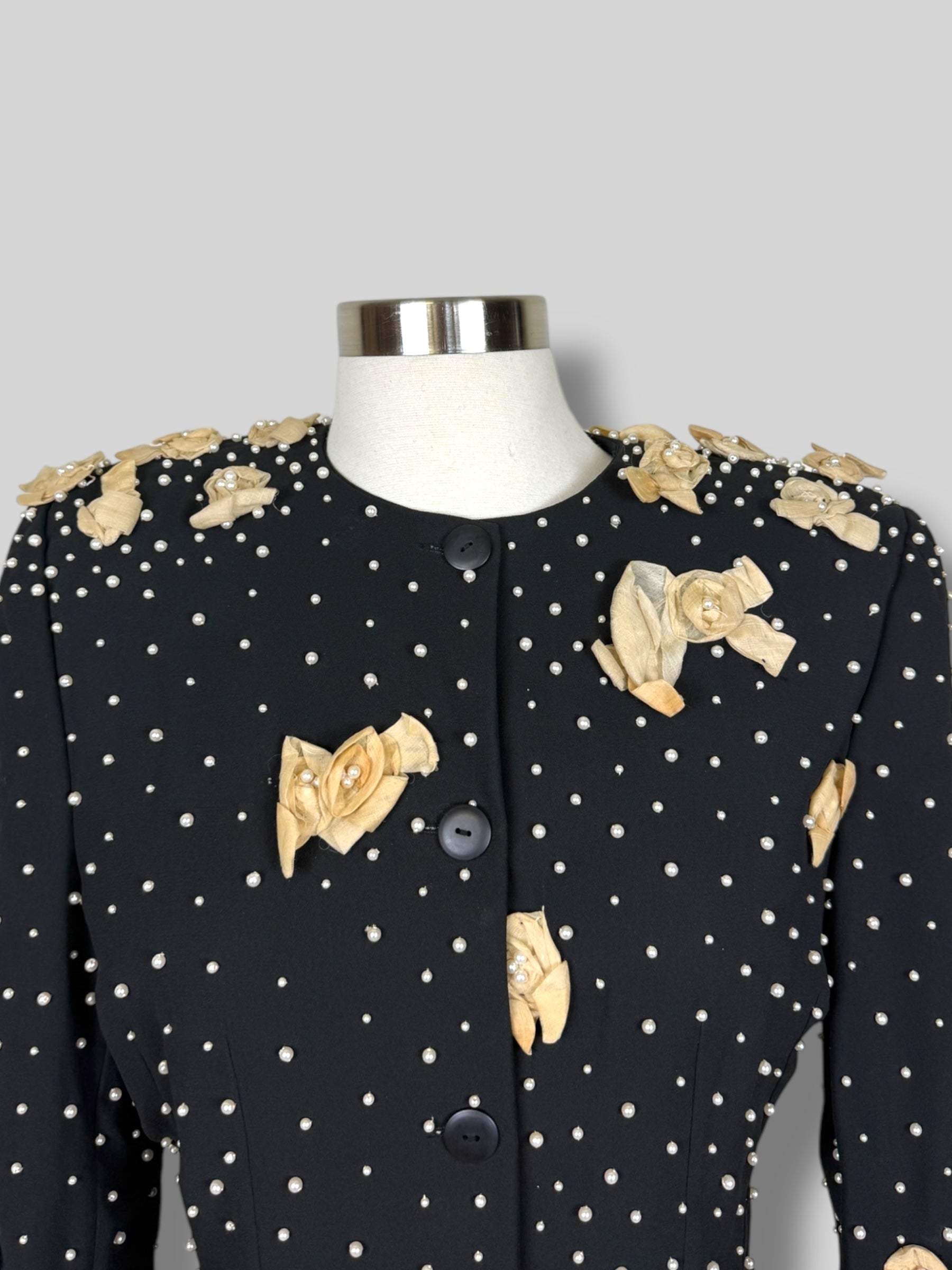 Chic Vintage 60's Couture from Patis blazer hand embroidered with pearls and muslin. Great vintage condition.