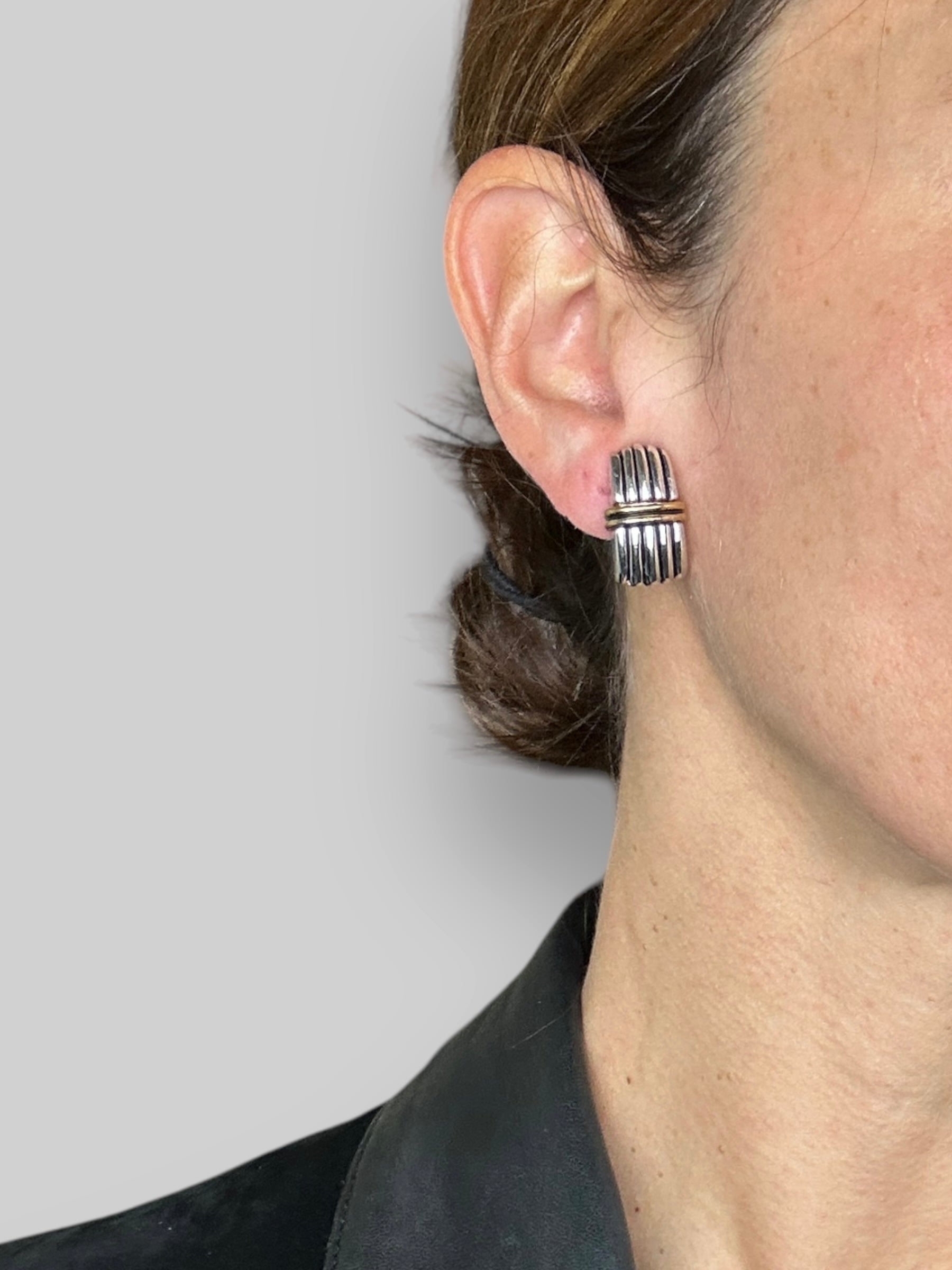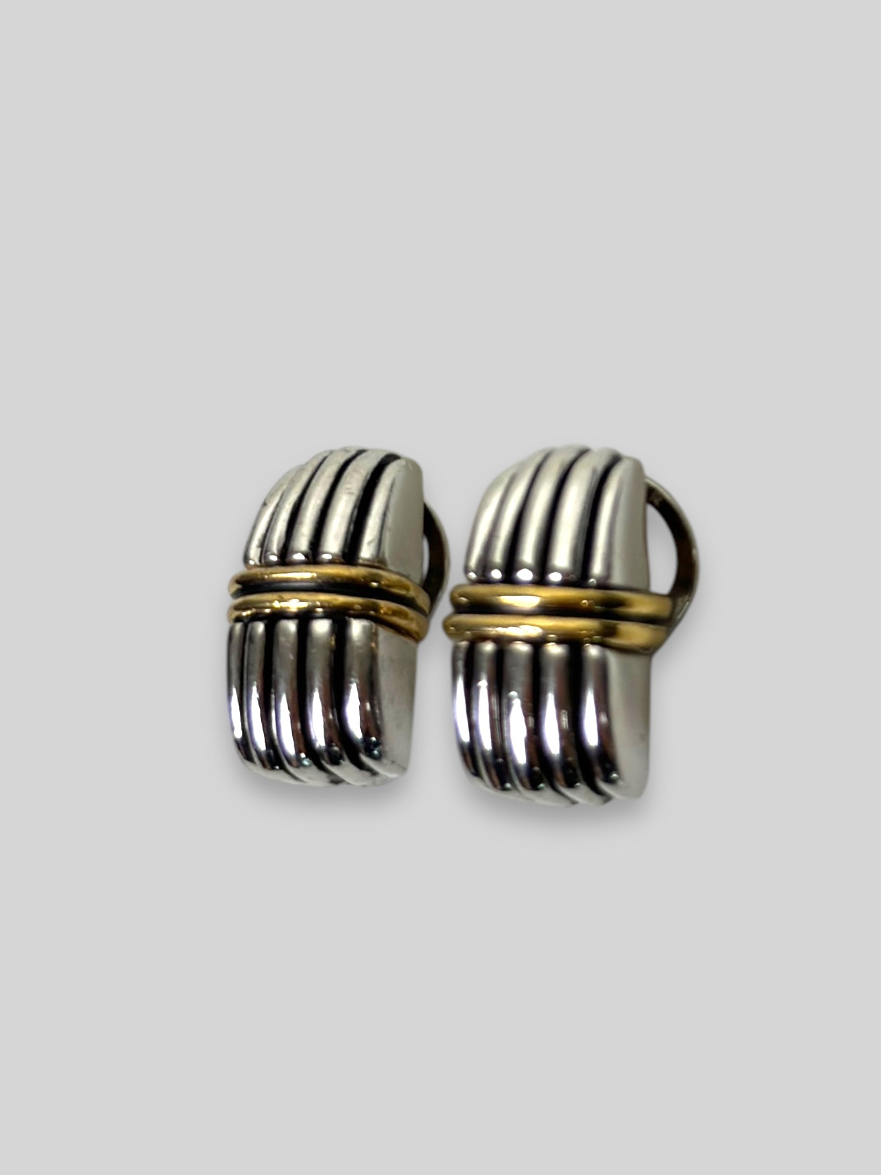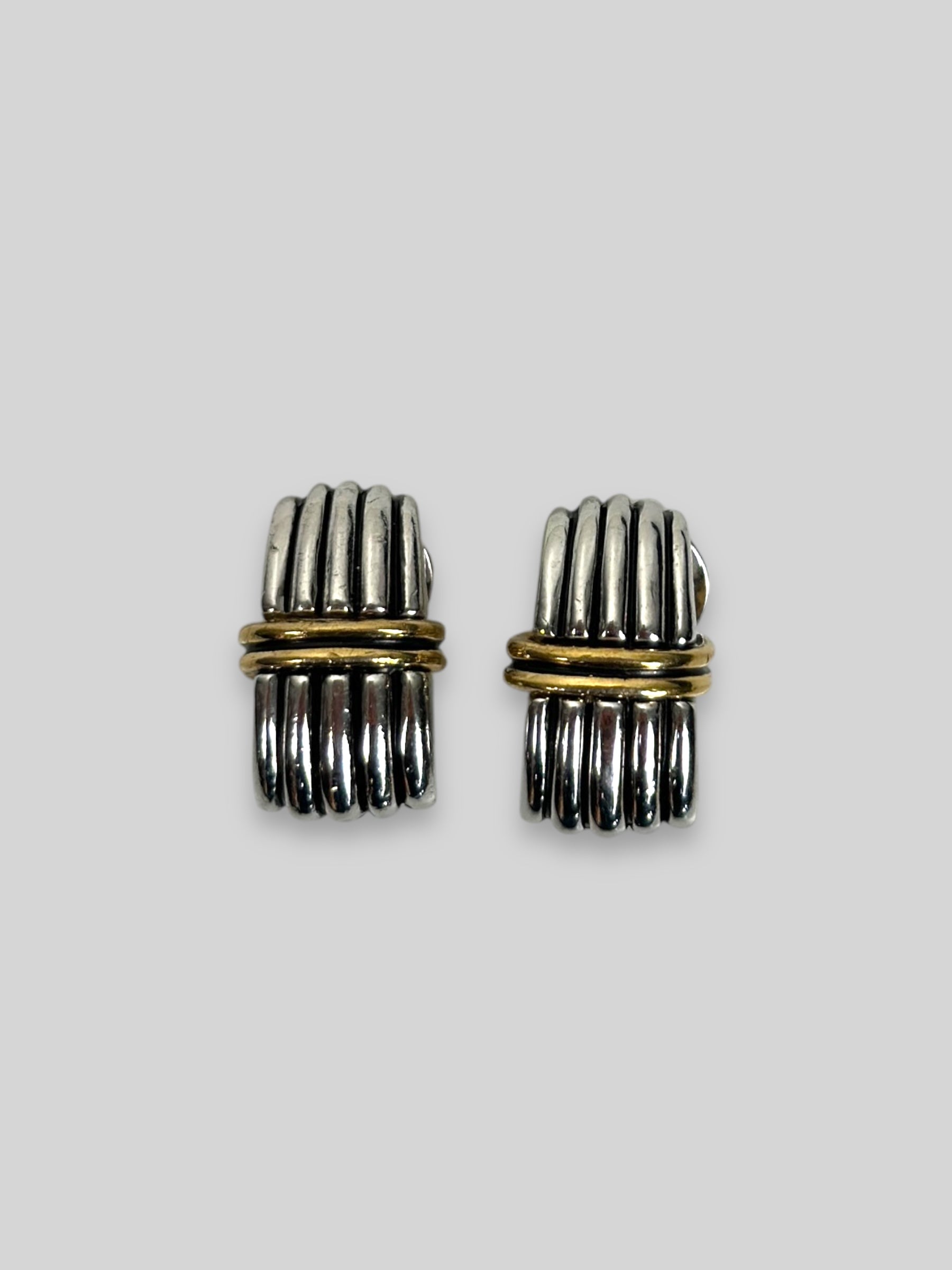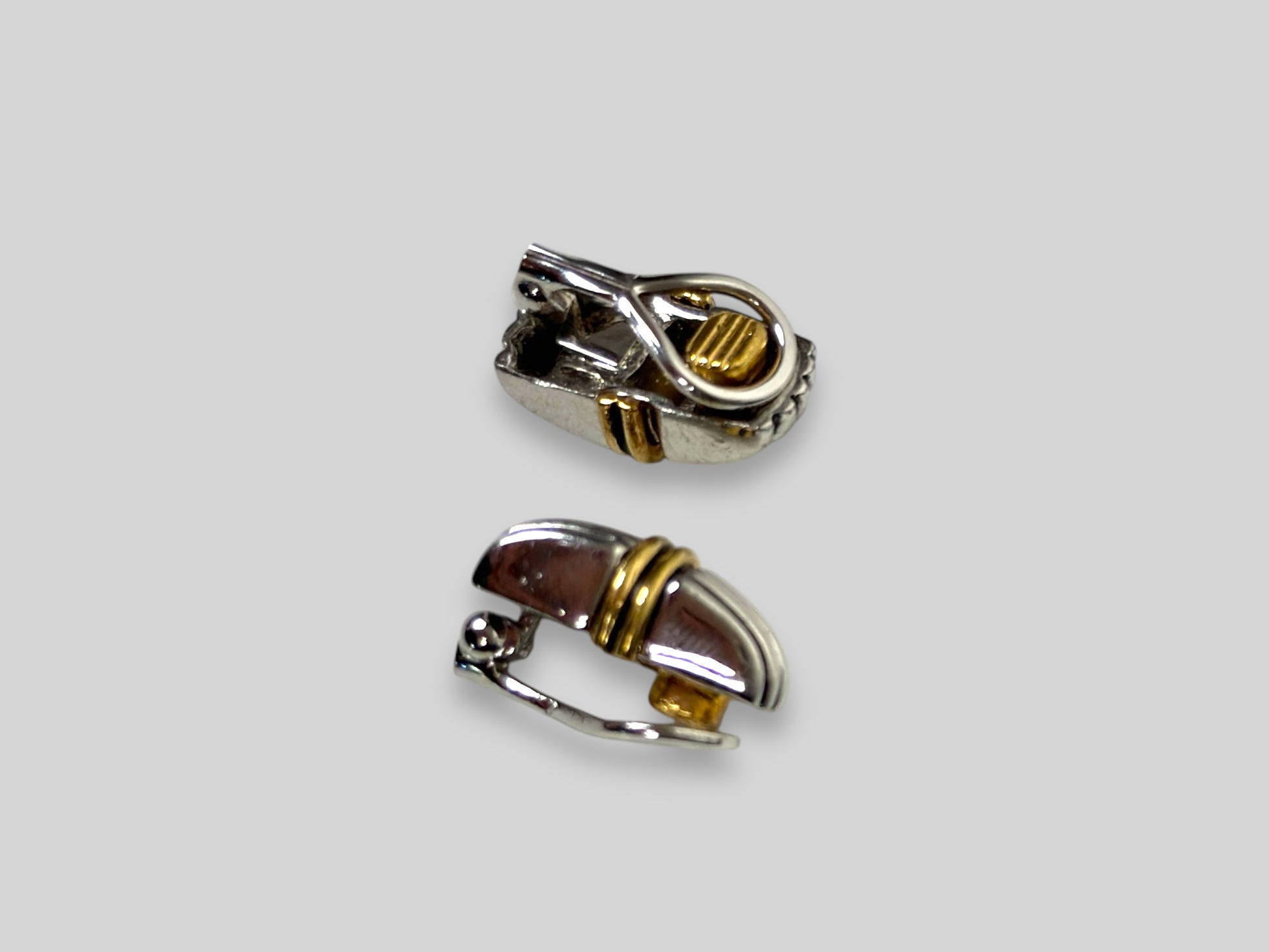 Vintage 90's Premier Designs Gold Silver Tone Earrings Clip-on Textured Rectangle Stud.