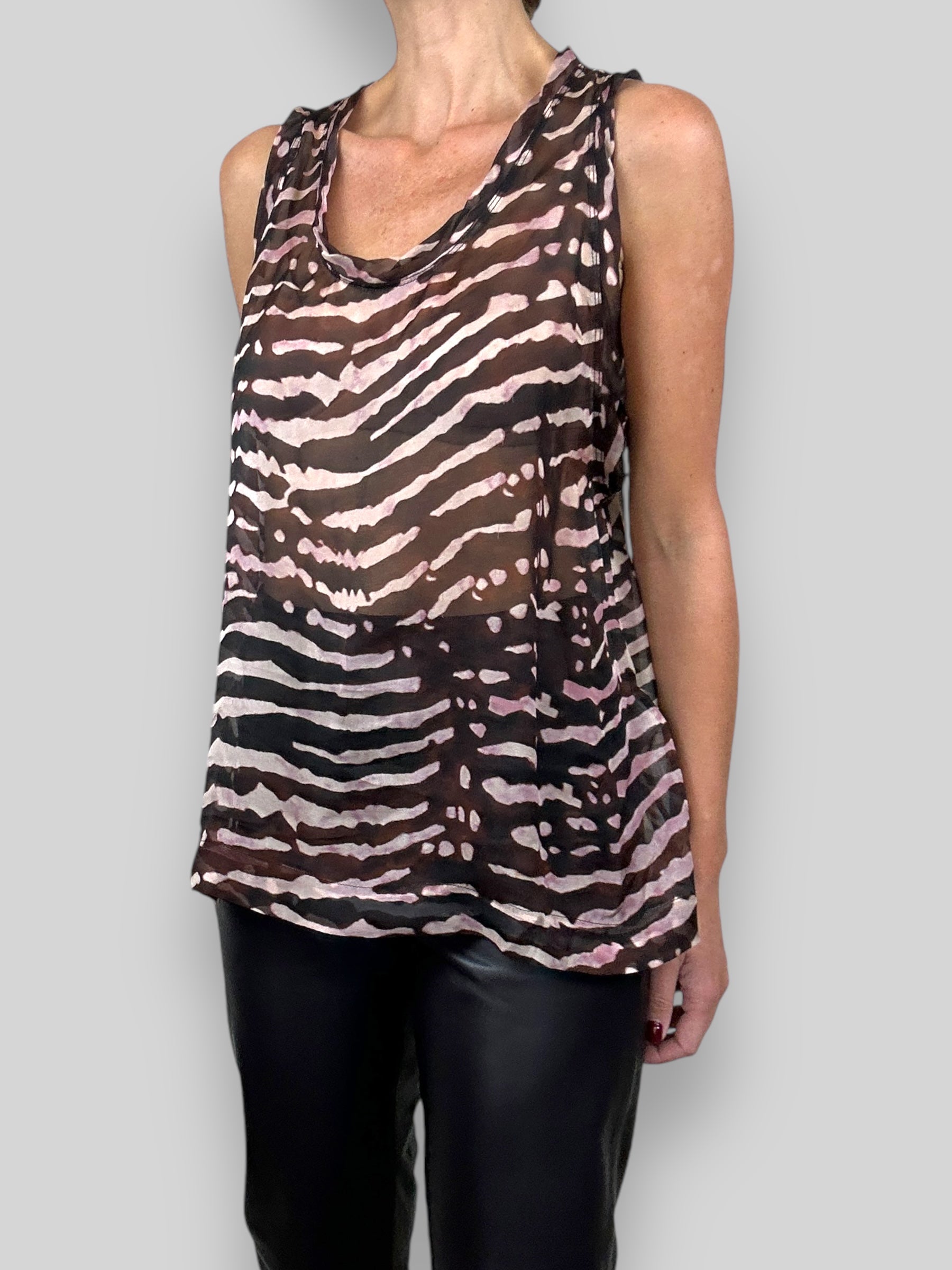 Vintage Tom Ford 100% Silk top zebra print. Brown and blush pink.